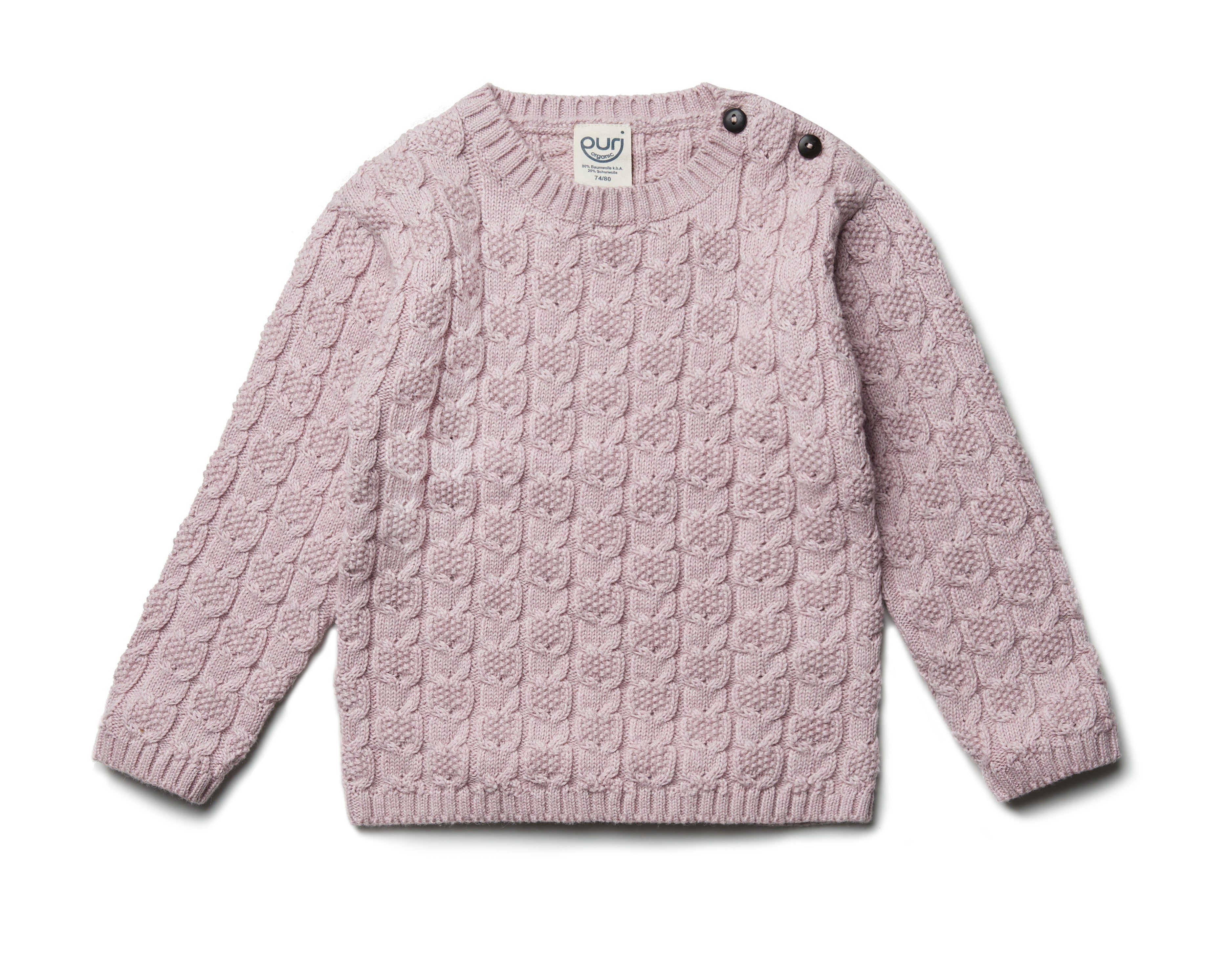 Strickpullover mit Struktur/Zopfmuster in Rosa von Puri.