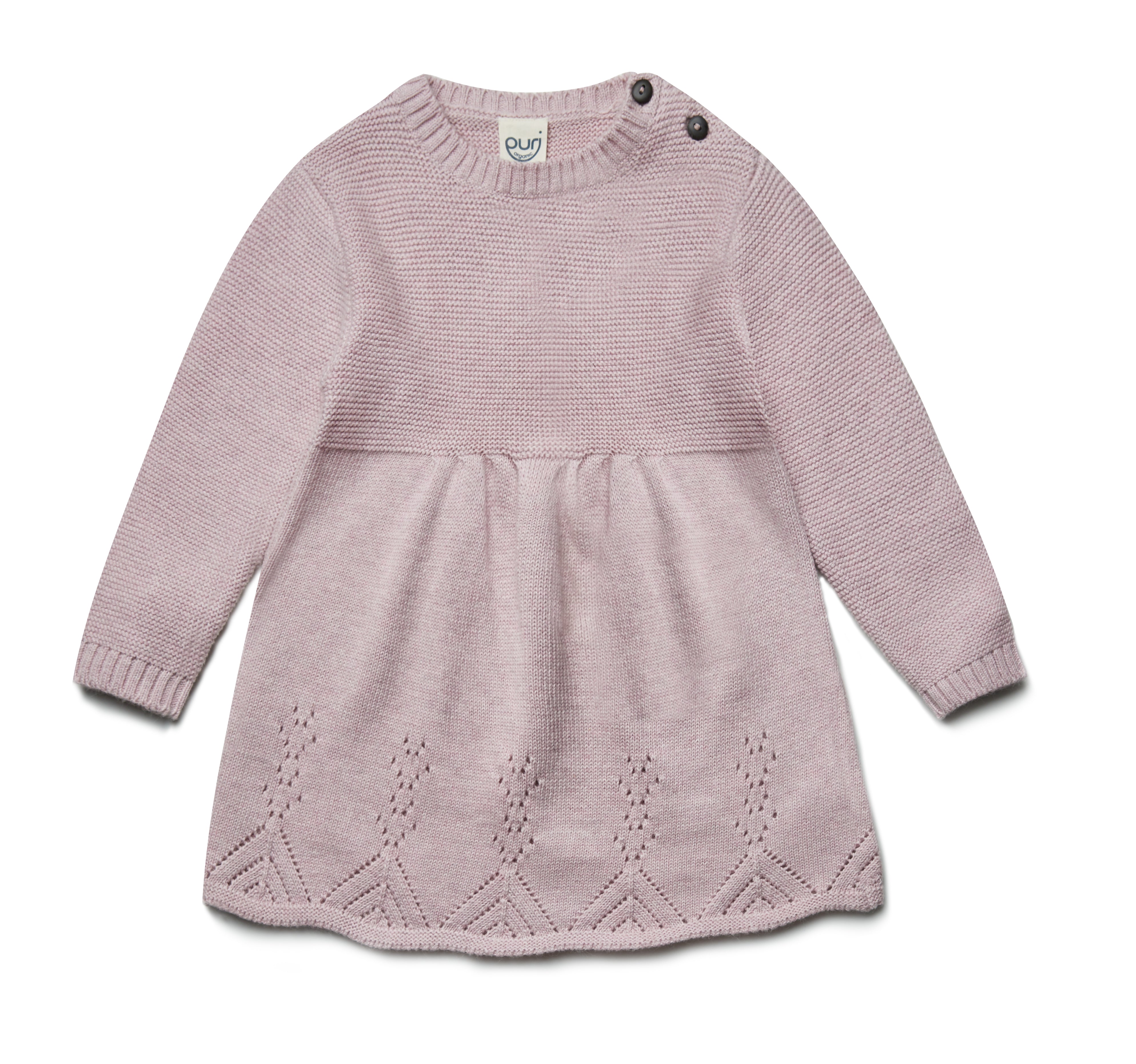 Langarmkleid im Krausstrick und mit Ajourmuster von Puri.