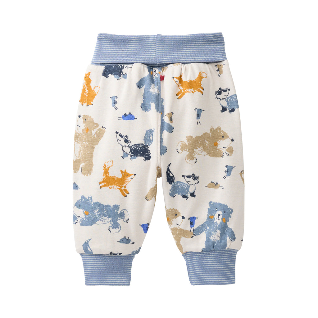 Wendehose mit Strickbund - auf der einen Seite mit Bärenmotiv und auf der anderen Seite blau gestreift.