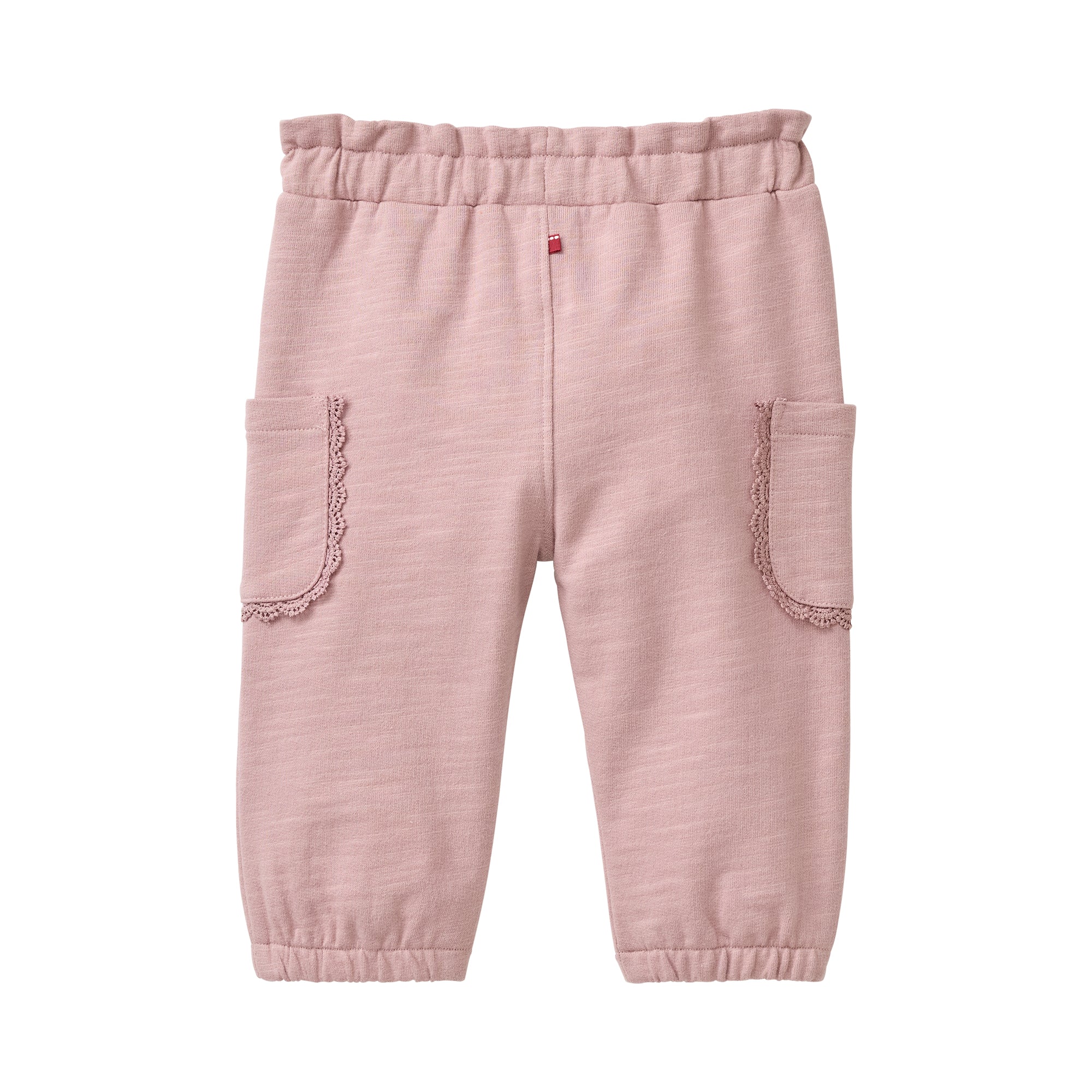 Die Hose hat zwei Seitentaschen und einen Gummibund mit zusätzlichen Bändern zum Verschließen.